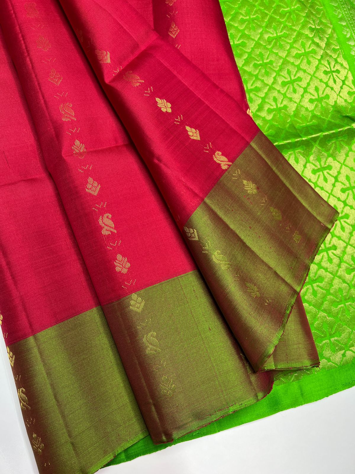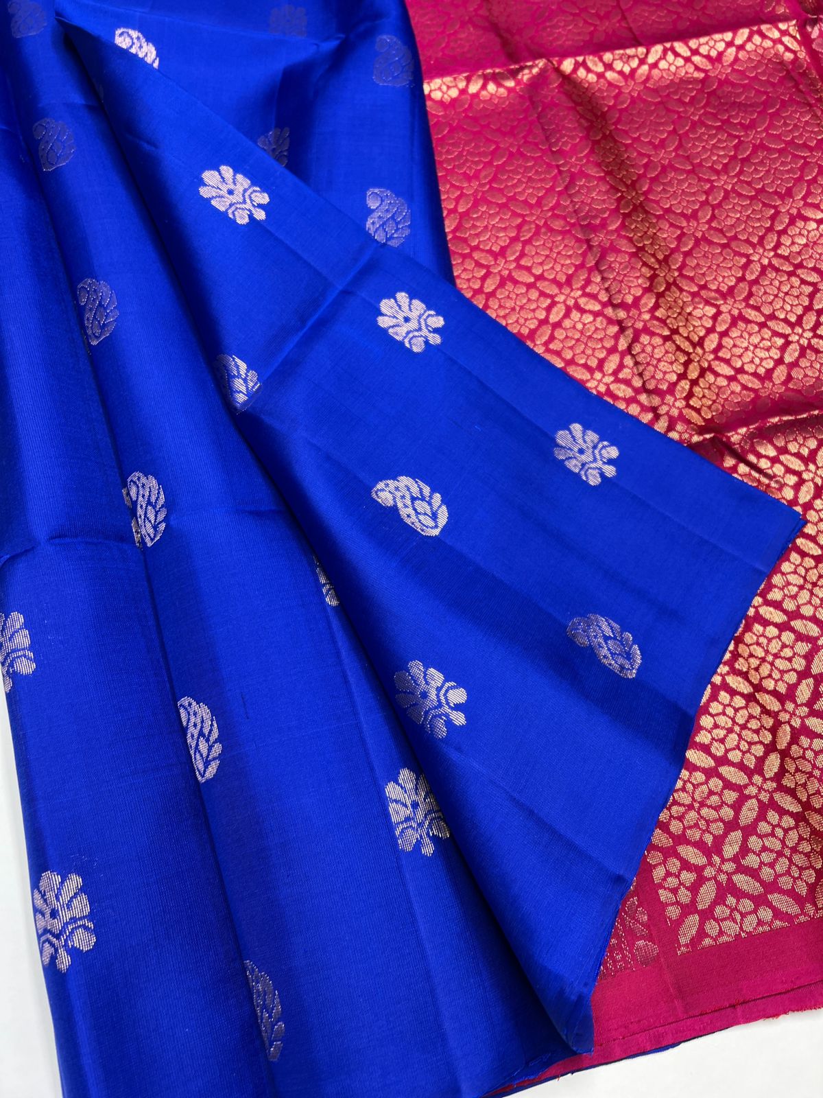 Introducing our luxurious Handloom Soft Silk Sarees crafted with elegant Bhutta motifs and rich contrast borders. A perfect blend of tradition and sophistication for weddings, festive occasions, and grand celebrations.